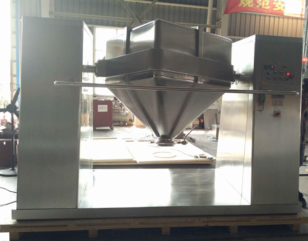 该机主要用于制药工业固体制剂生产中的颗粒与颗粒、颗粒与粉末、粉末与粉末等物料的混合。具有混合批量大,受力可靠,运行平稳等优点,是药厂总混的理想设备。同时在制药、化工、食品等行业广泛应用。本机由机座、驱动系统、控制系统、混合料斗等部件组成。工作时,将物料加入料斗后,锁紧斗盖,按工艺要求设定混合时间、混合速度、启动控制系统,即可开始混合作业;到设定的时间后,机器自动停止,混合结束后进行分料。该机是我公司广泛吸收、消化国外技术,结合国情研发成功的新机型。结构合理,性能稳定,操作方便,整机无死角,无外露螺钉。